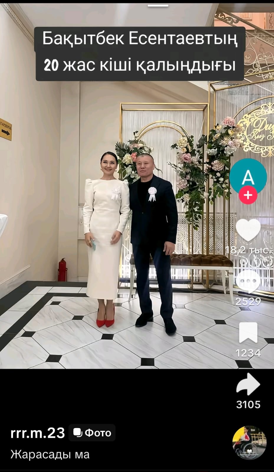 ТикТок әлеуметтік желісінде тараған фотода Баян Мақсатқызының бірінші күйеуі Бақытбек Есентаев пен жас қыздың тұрғанын көруге болады.