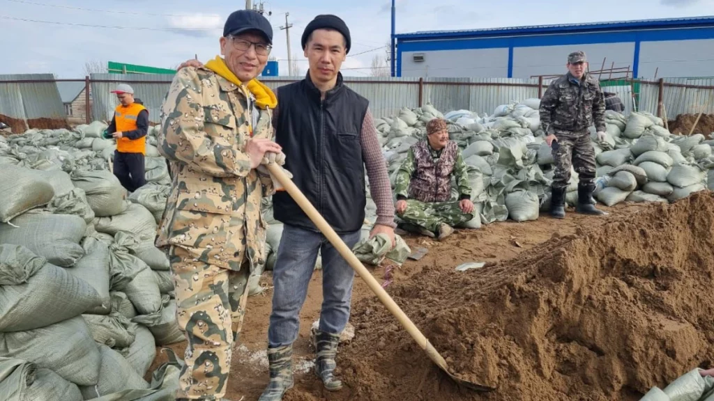 «Әділдік және Өркендеу» қорының белсенділері үйлерді су тасқынынан құтқарып жатыр