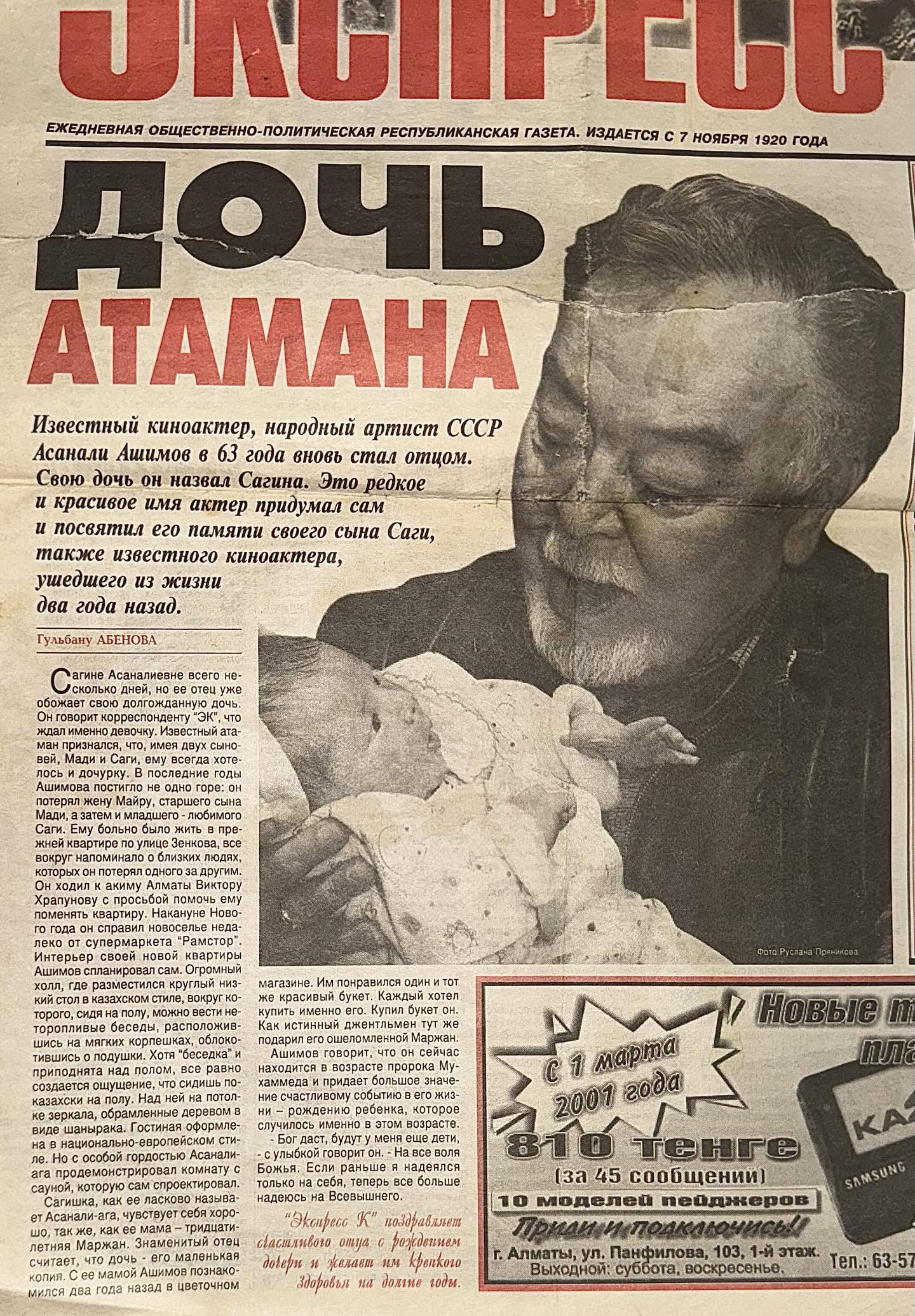 Марқұм актер Асанәлі Әшімовтің қызы Сағина әкесі туралы тағы бір естеліктермен бөлісіп, көпшіліктің ықыласына бөленді деп жазады Democrat.kz.