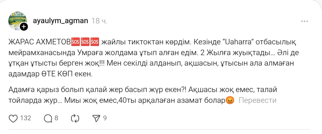Дәл осыған ұқсас жағдай Threads желісінде де жазылып жатыр. Желі қолданушылардың айтуынша, бірер жыл бұрын ұтыс ойындарын ұйымдастырған Жарас Ахметов уәделі сыйлықтарды бермегенін айтады.