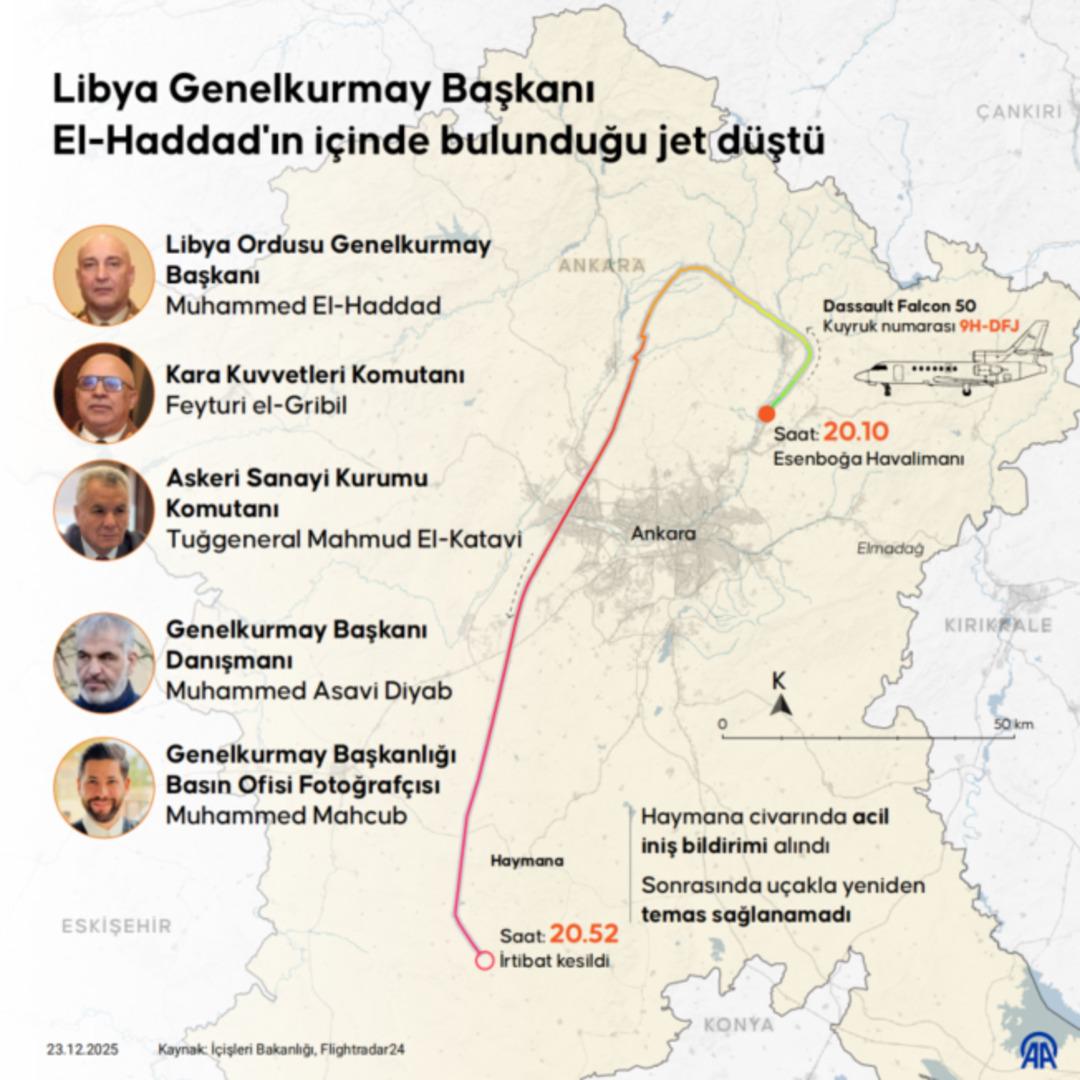 Ішкі істер Министрі Али Ерликая апат туралы мәлімдемесінде:"Анкара Есенбоға Әуежайынан Триполиге ұшып шыққан ұшақтың сынықтары Хаймана ауданындағы Кесиккавак Ауылынан 2 км қашықтықта орналасқан. оған оңтүстіктегі жандармериямыз жетті. Оқиғалар туралы жұртшылыққа хабарланатын болады"деді.