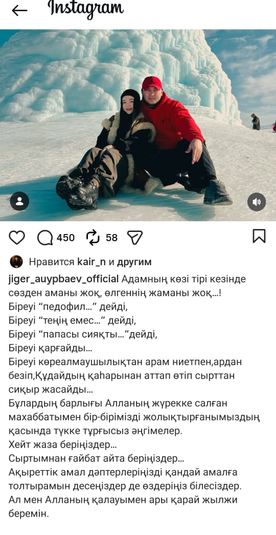 Әнші Жігер Ауыпбаев қоғам тарапынан өзіне тағылып жатқан сынға қатысты алғаш рет жазба жариялады деп жазады Democrat.kz.