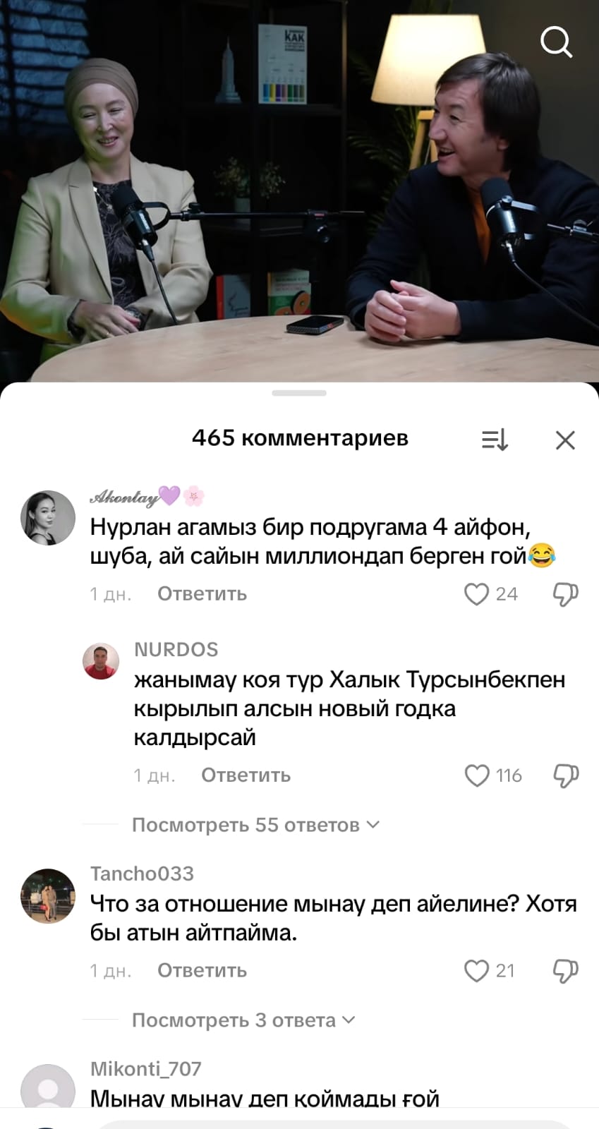 Осы сөздері жақпаса керек, бір оқырман осы видеоның астына: "Нурлан агамыз бир подругама 4 айфон, шуба, ай сайын миллиондап берген гой"деп пікір қалдырды.