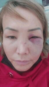 Сол кезде базарда істейтін қатындар келіп, маған арақ іштірмекші болды. Мен ішпей қойдым. Қолдарын қайтарғаным үшін 2 қатын мені ұрып, киімімді жыртып, шашымды жұлып, мұрнымды сындырды.