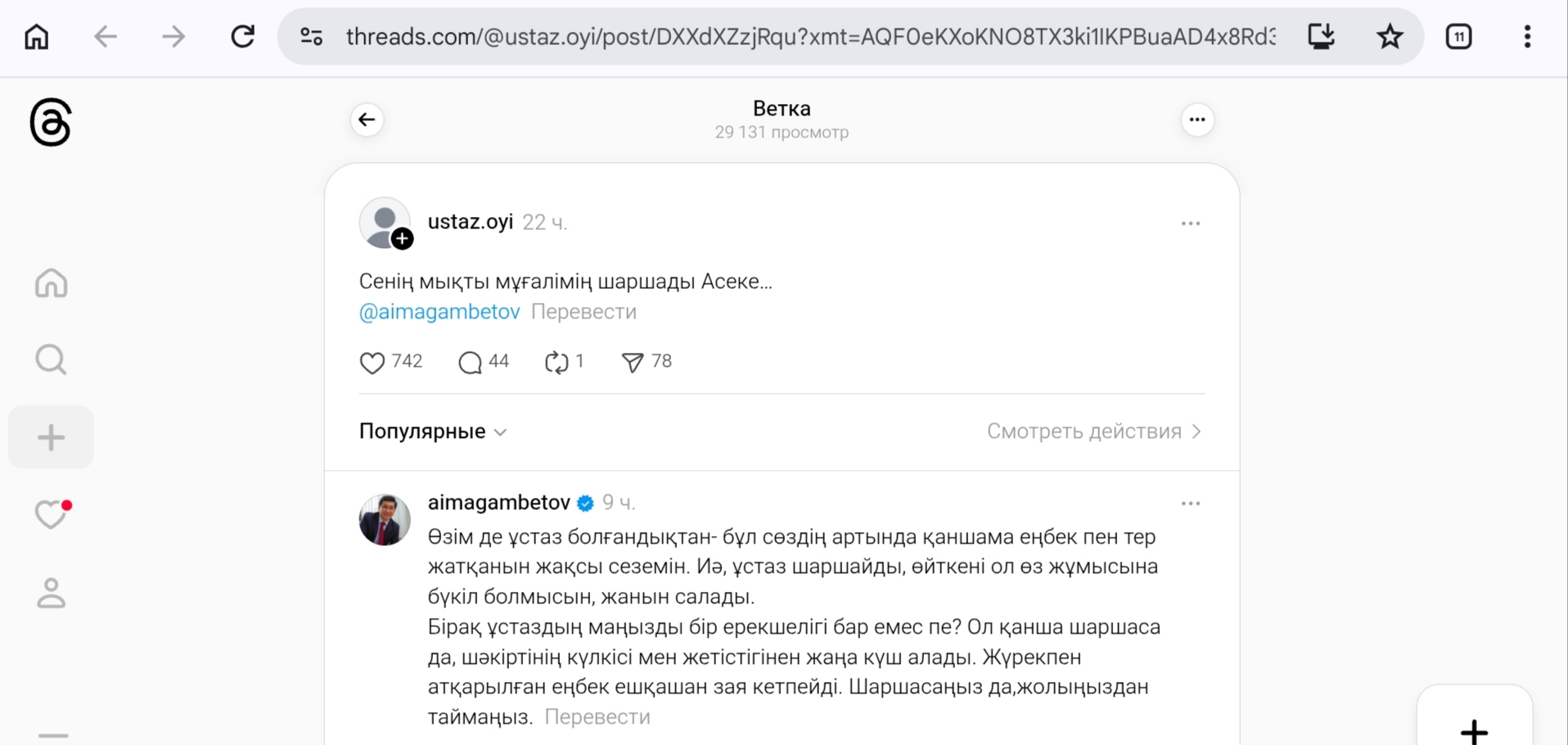 Threads желісінде педегогтың "Сенің мықты мұғалімің шаршады Асеке…"деген жазбасы кімді болса да, елең еткізері сөзсіз еді.