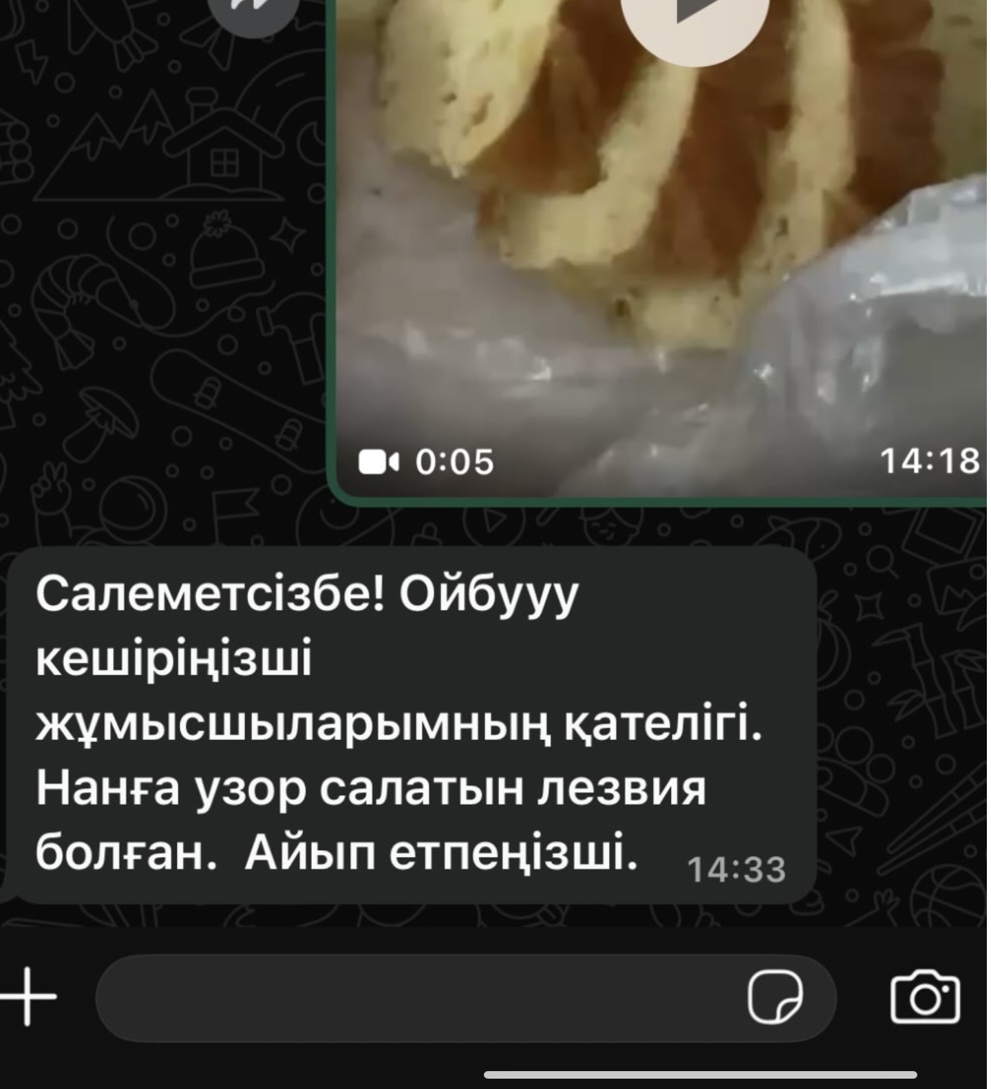 «Нанды кесіп жатқанда ішінен пышақ шықты. Мен өзім нан жемеймін, тек күйеуім… Тек әжейді қолдау үшін алғам», — деп жазып, оқиғаның видеосын Threads желісінде жариялаған.