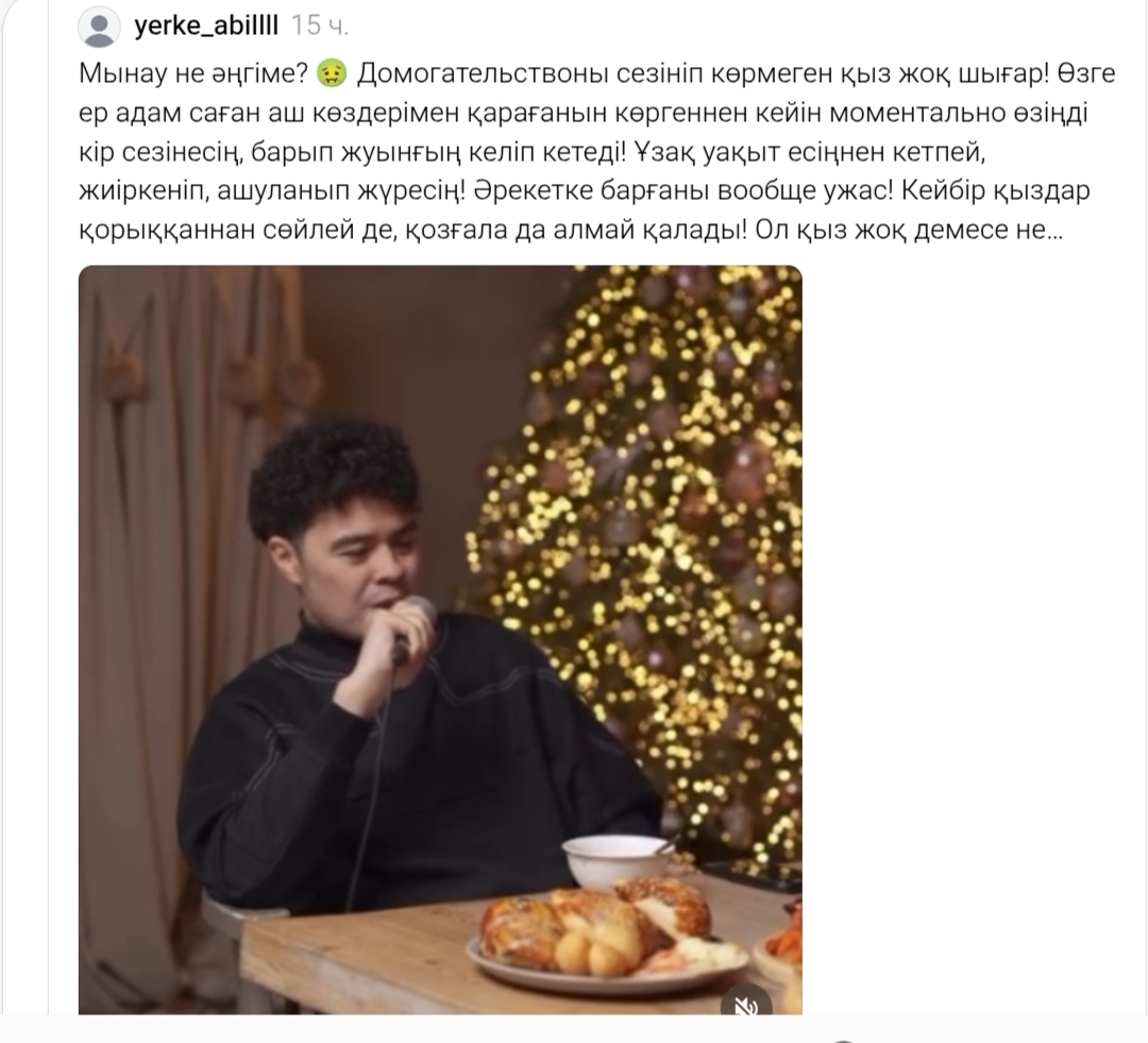 Әлемде әр 3 әйел (қыз, жасөспірім) домогательствоны басынан өткереді десе көп жігіттер сенбейді.Міне пожалуйста факт на лицо. Өзі айтып, өзі соны күшті бір күлкілі әңгіме екен деп жеткізіп отыр. Оны әлдеқандай қылып ютубқа салып... Уфффф… с утра выбесили"деп жазба қалдырды.
