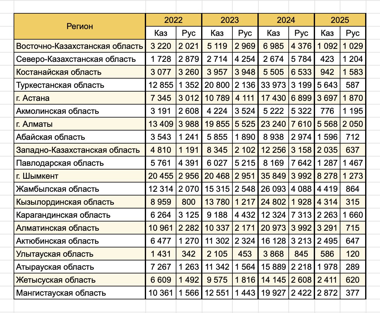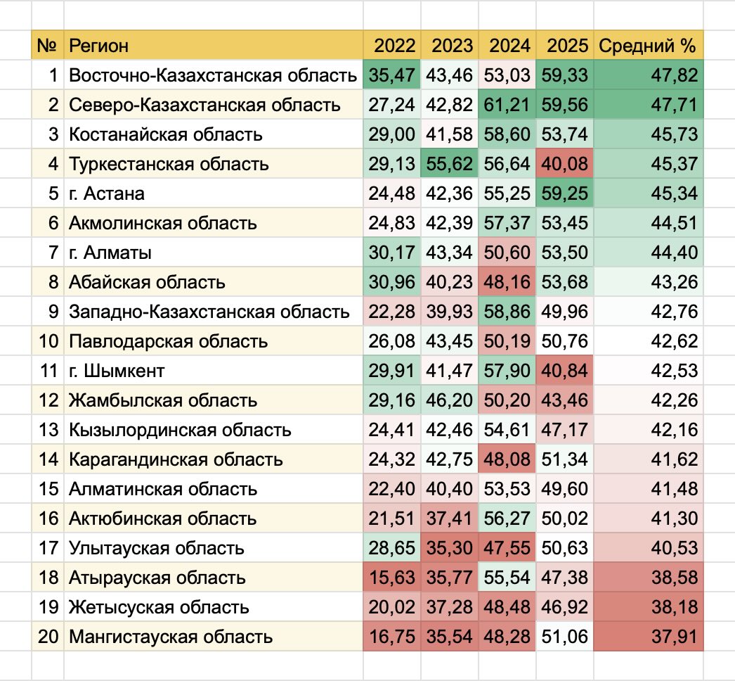 2022-2025 жылдардағы педагогтардың өз пәні бойынша тапсырған тест нәтижелері өте төмен екенін байқауға болады.