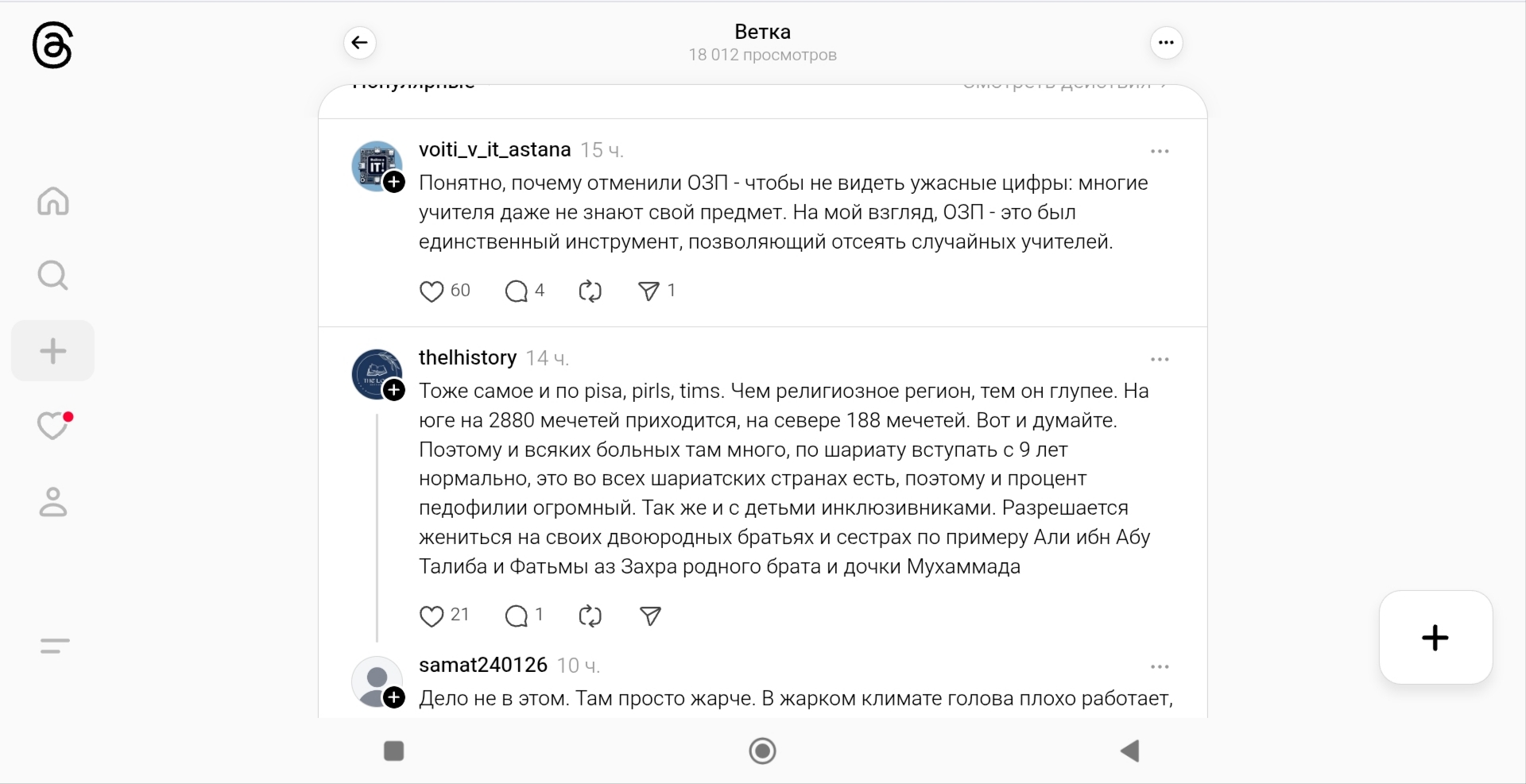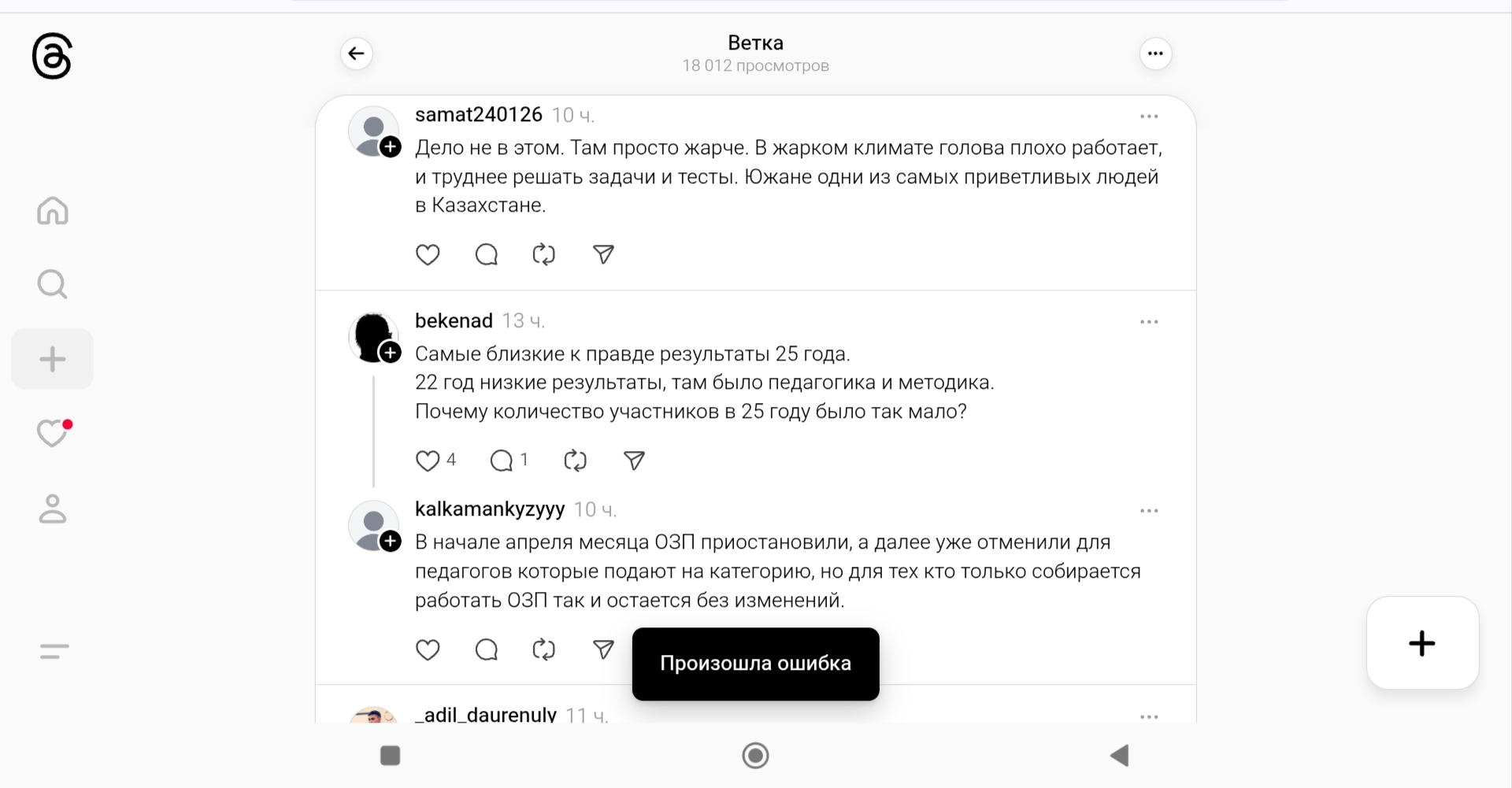 Threads әлеуметтік желісінде аттестация тақырыбын қаузаған педагогтар "ОЗП" яғни мұғалімнің өз пәнінен тапсыратын тест нәтижесін жариялап, жағаларын ұстауда.