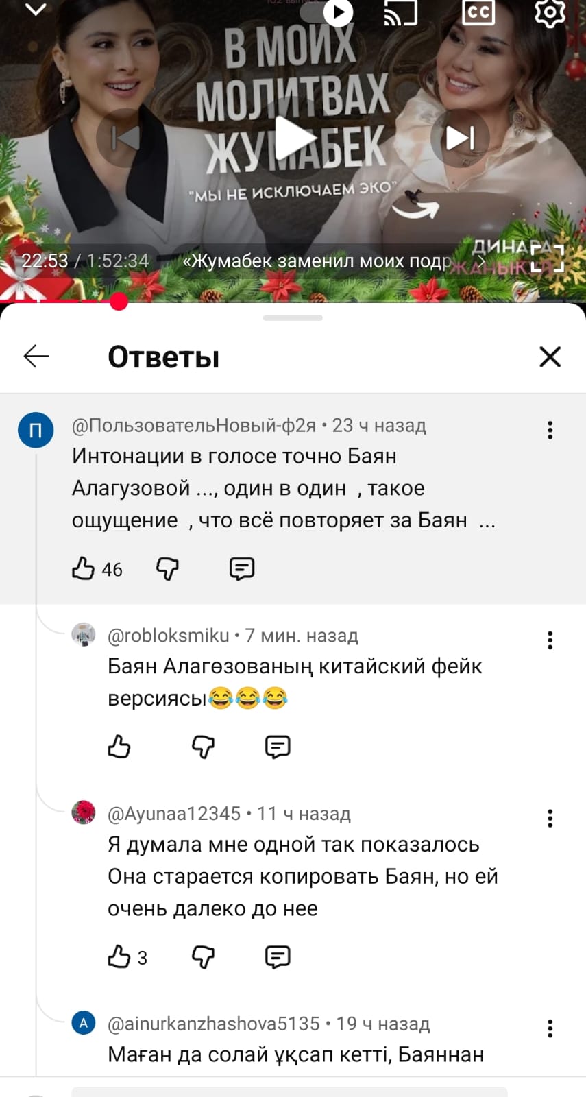 Сұхбатты қараған жұрттың көбі "Баян Алагөзоваға қатты еліктейді"деп Динара Сәтжанды сынап, тіпті кей оқырман тележурналистің жеке өміріндегі жағымсыз жайттарды да жазыпты.