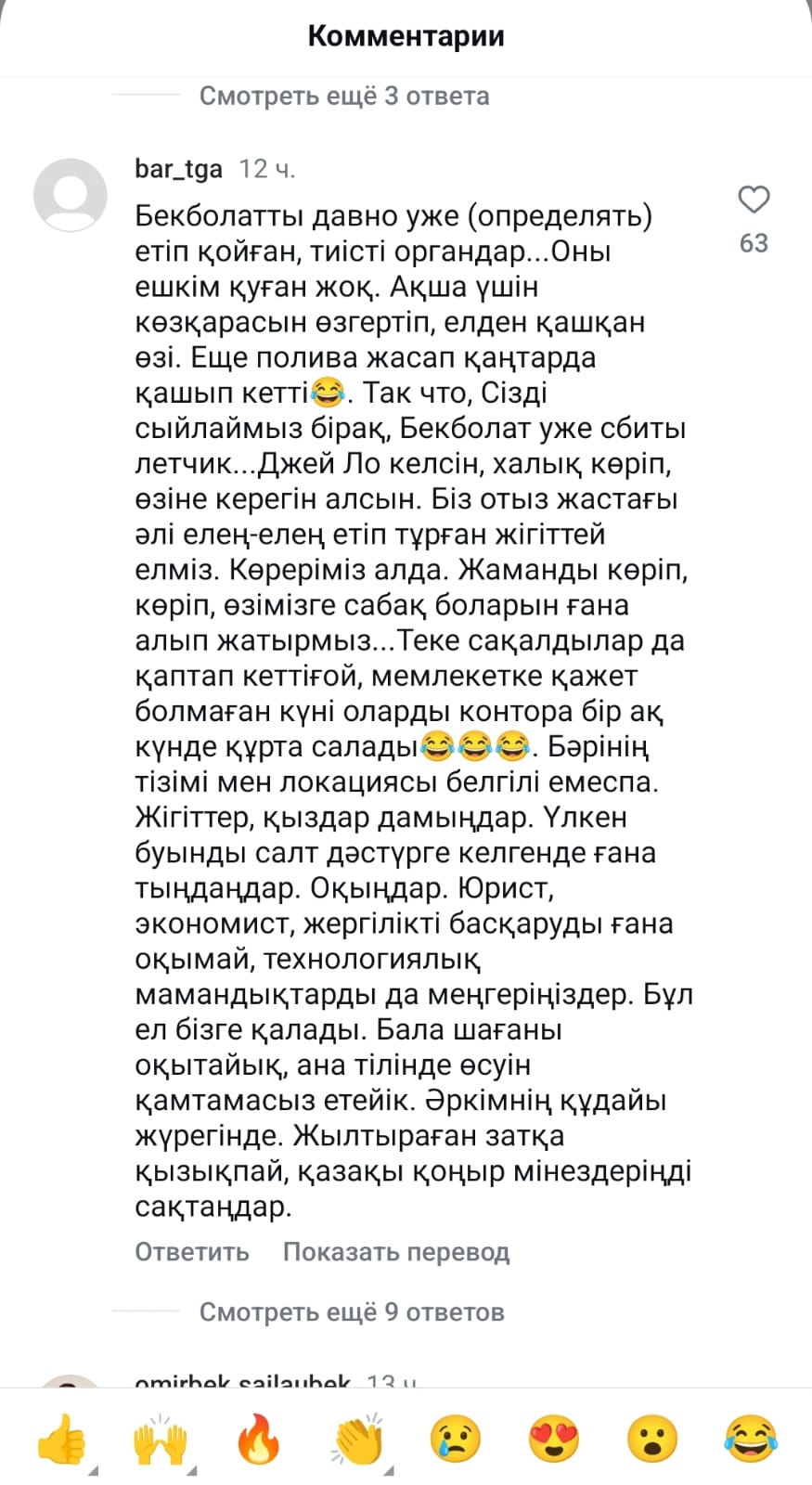 Әйтсе де, оқырмандары оның бұл жазбасын қолдау былай тұрсын, ауыр сөздер жазып, сынап тастады.