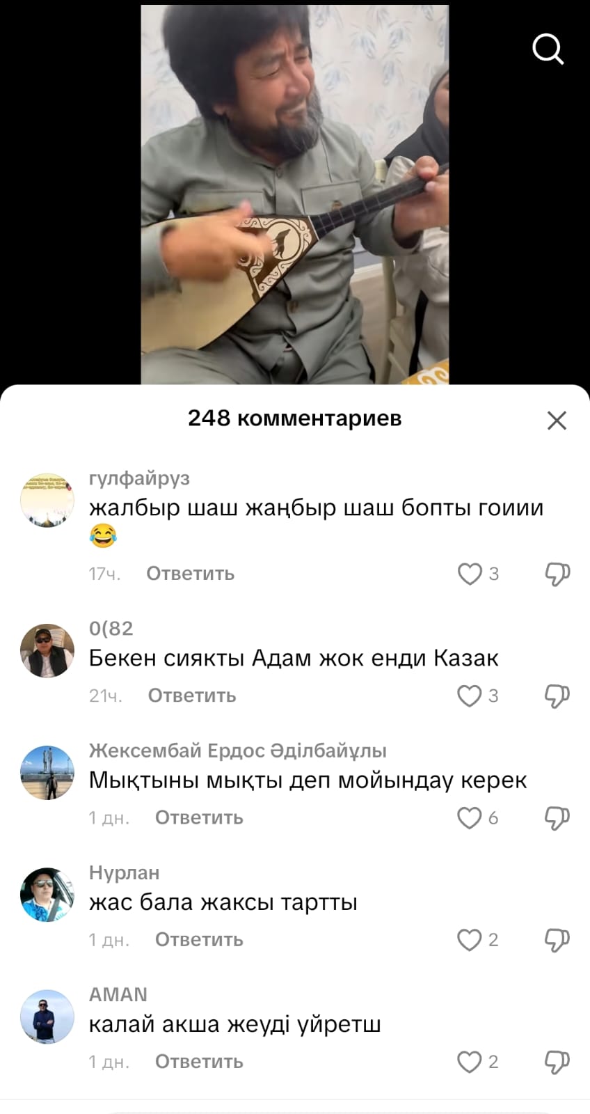 Осы бір видео басым көпшілік жұртқа аса ұнай қоймады. "Домбыраны харам деп, енді неге өзі тартып отыр?", "Қаңтарда халықты сатып кеткен қашқын", "сақалдылардың көсемі" деген сыңайда пікір жазуда.