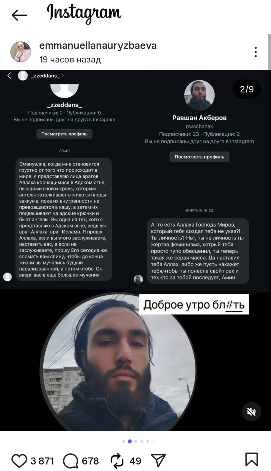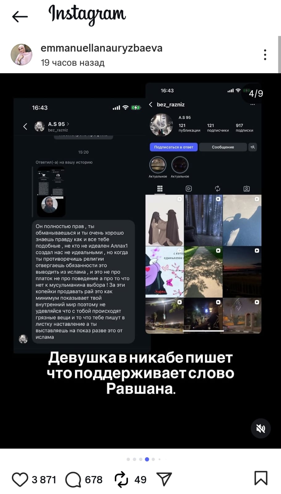 "Неге соңғы уақытта қыздар орамалдарын шешіп, кейбірі намазын тастап, тіпті бірі діннен түбегейлі түрде кетіп жатыр. Неге? Сіздерге оның дәлелі ретінде мына (төмендегі суреттер) нәрселерді көрсетейін" деген блогер өздерін мұсылман санайтын еркектердің ерсі, арсыз тірліктерін әшкереледі.