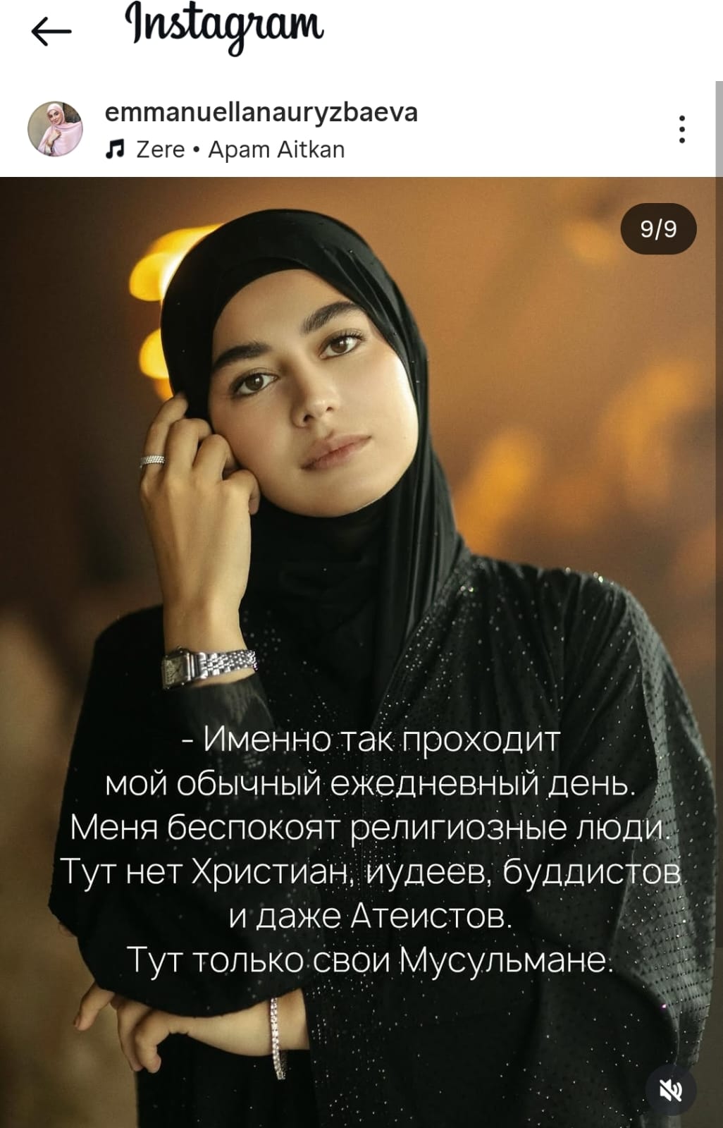 Ақтөбе мешітінде бір еркек тиісіп, солай жұртқа танылған блогер Эммануэлла Наурызбаева хиджаб, ниқабтағы қыздарды өзін "мұсылманмын" дейтін еркектердің қалай қорлайтынын айтты деп жазады Democrat.kz.