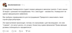 “Қыздардың тағдыры не болары белгісіз. Біз жәбірленушілерге әділдік талап етеміз! Университеті өз беделі үшін мұндай ақпараттарды жасырын ұстауды доғарсын. Осы тектес қылмыстар ұлдарға бала кезінен "сен басты адамсың" деп үйреткеннен туындап отыр. Олар осыдан кейін қалаған нәрсесін істеп үйренген. Қазақстанда әйелдердің құқығын сақтау және көтеру керек!”, – деп жазды жазба авторы.