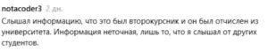Ал жазба астына жазылған пікірлердің бірінде студенттің 2 курс оқитыны және оқудан шығарылғаны айтылған.