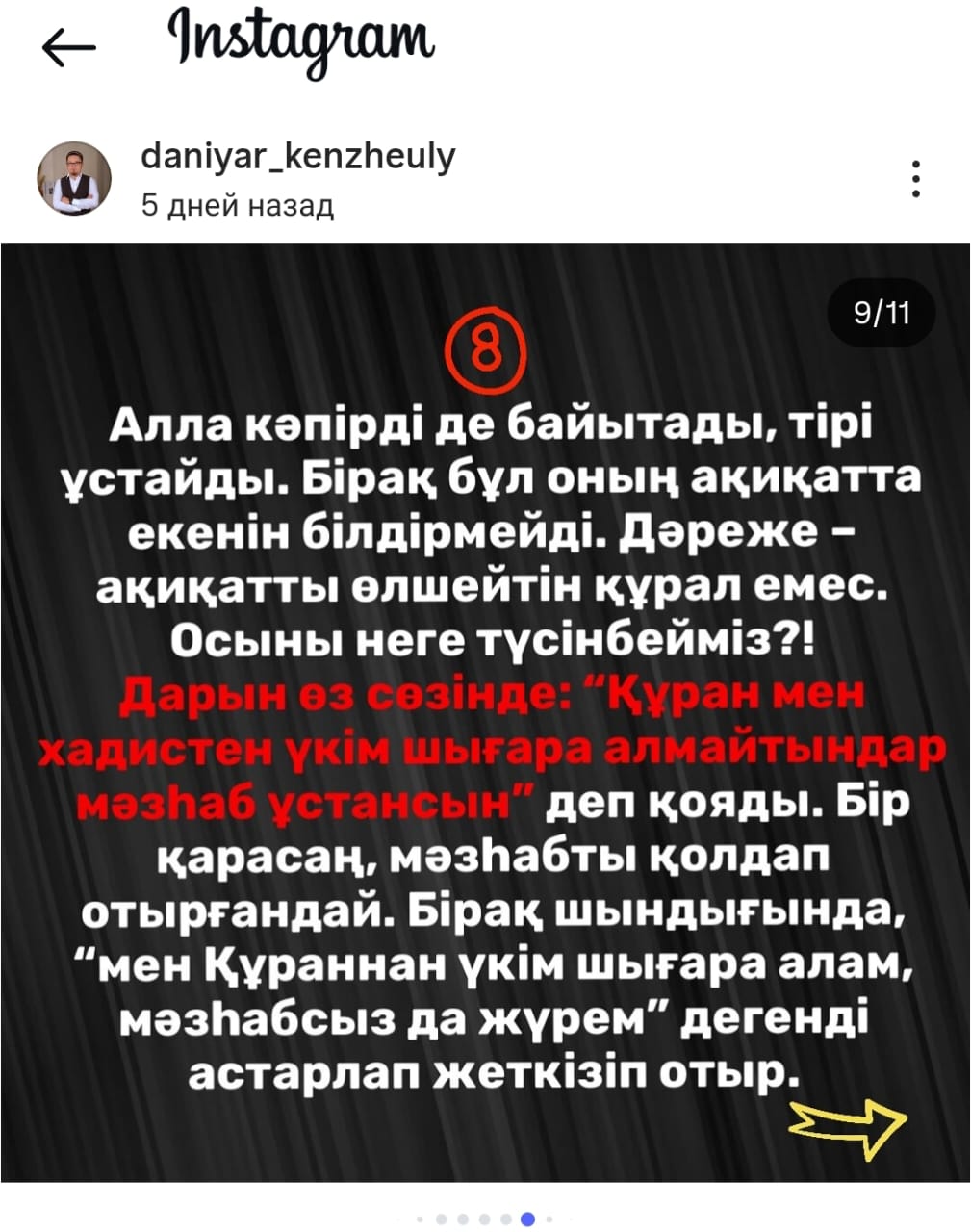 Дарын Мубаровтың ақидасынан бастап, әр айтқан сөзіне талдау жасаған блогер, уағызшы Данияр Кенжеұлы иманы әлсіздерге оны тыңдамауға шақырды.