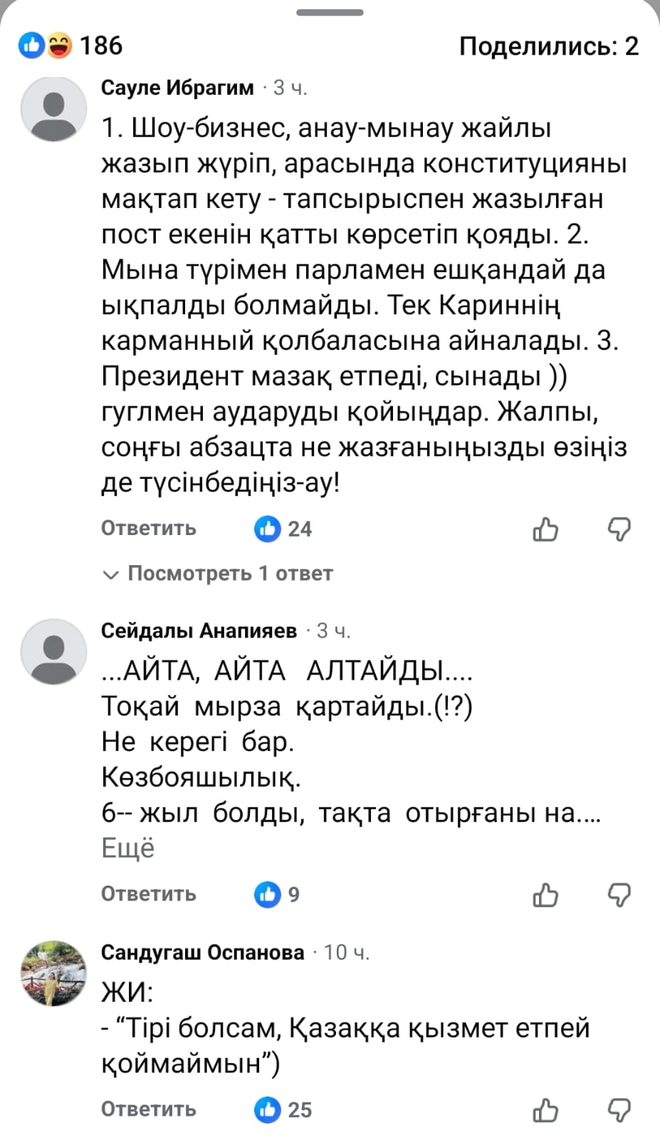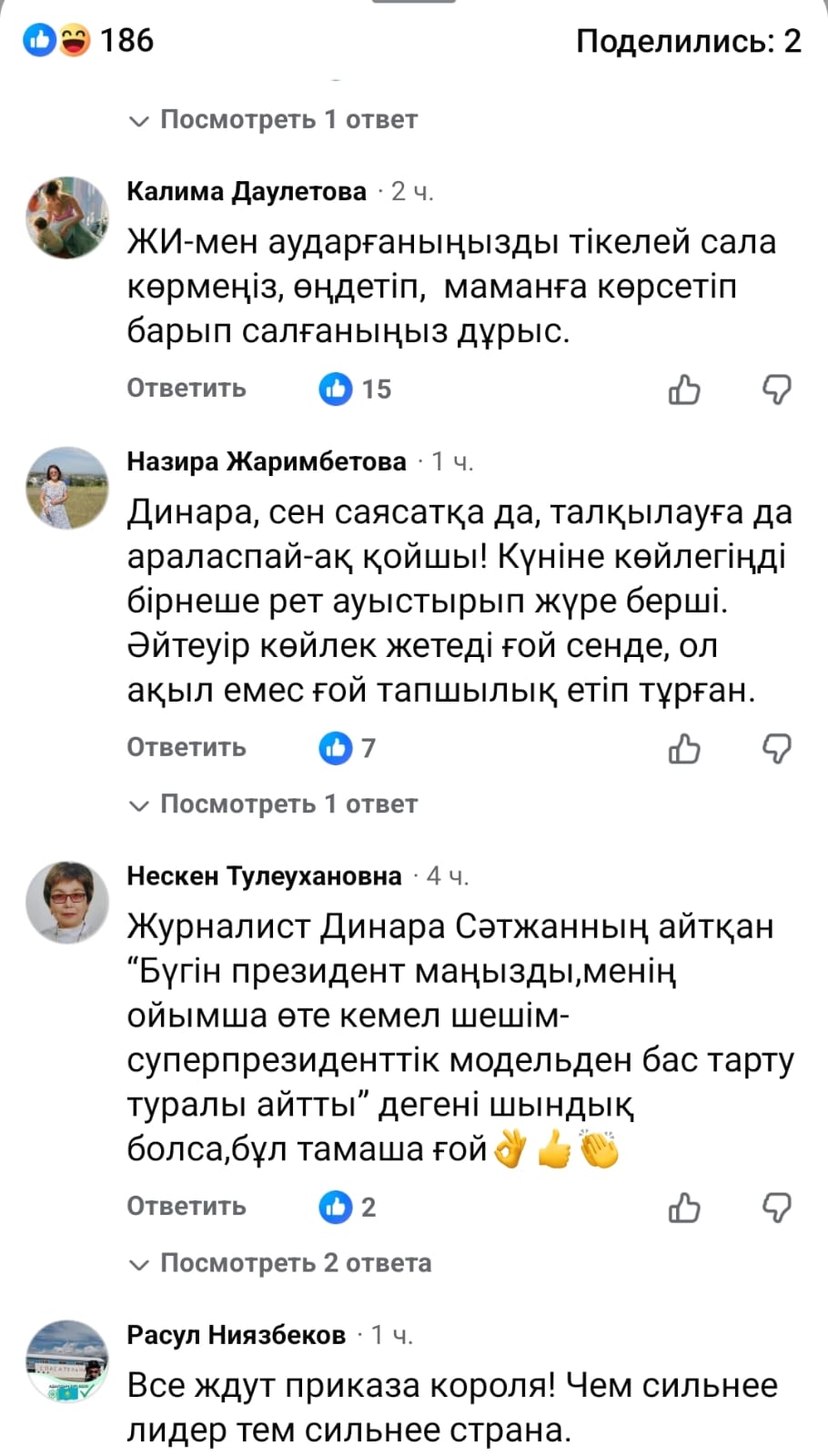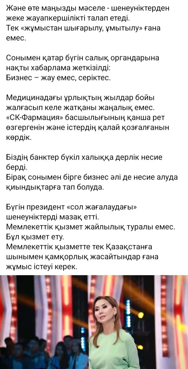 Динара Сәтжан (Динара Жанықұл) өзінің парақшасында: "