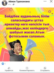 Айжан Турехановна деген желі қолданушының келесі постын күтеміз, егер мен скринін қойған пост бар болғаны әлдебіреулерді бопсалау болмаса