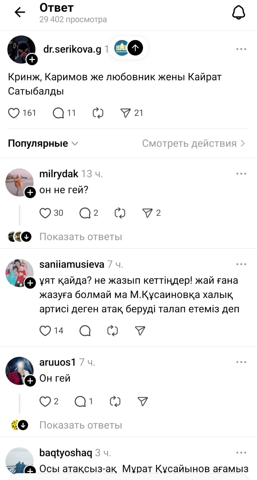 Threads әлеуметтік желісінде әнші Әлішер Кәрімов туралы сұмдық дүниелер жазылып жатыр деп жазады Democrat.kz.