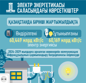 2024 жылдың бірінші жартыжылдығында Қазақстанда 60,169 млрд кВт/с тұтыну кезінде 60,449 млрд кВт/с электр энергиясы өндірілді. Бұл көрсеткіштер еліміздің электр желілік инфрақұрылымының тұрақтылығын көрсетеді.