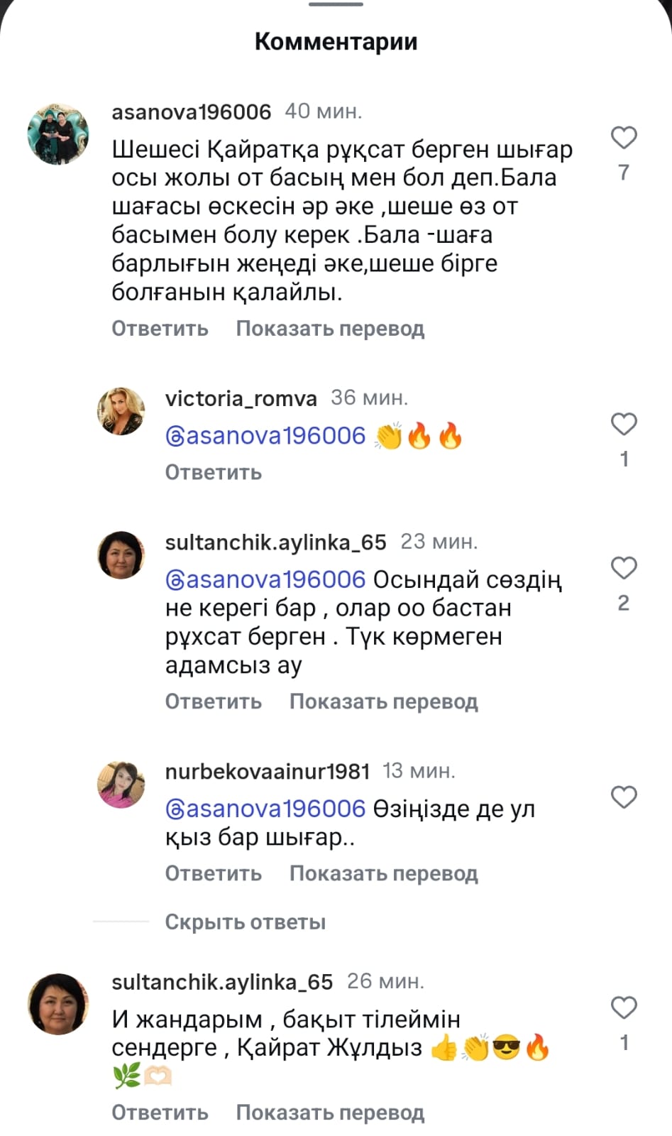 Осыған қатысты пікір жазғандар Қайрат пен Жұлдыздың бірге жүргеніне қуанып және Гүлзира ханымға қатысты да пікір жазуда.