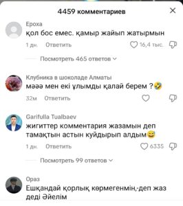 ТикТок әлеуметтік желісінде сраыағаштық Асанов діген азамат "Әйелдеріңнен көрген қорлықтарыңды жасырмай жазыңдаршы" деген видео жариялады деп жазады Democrat.kz.