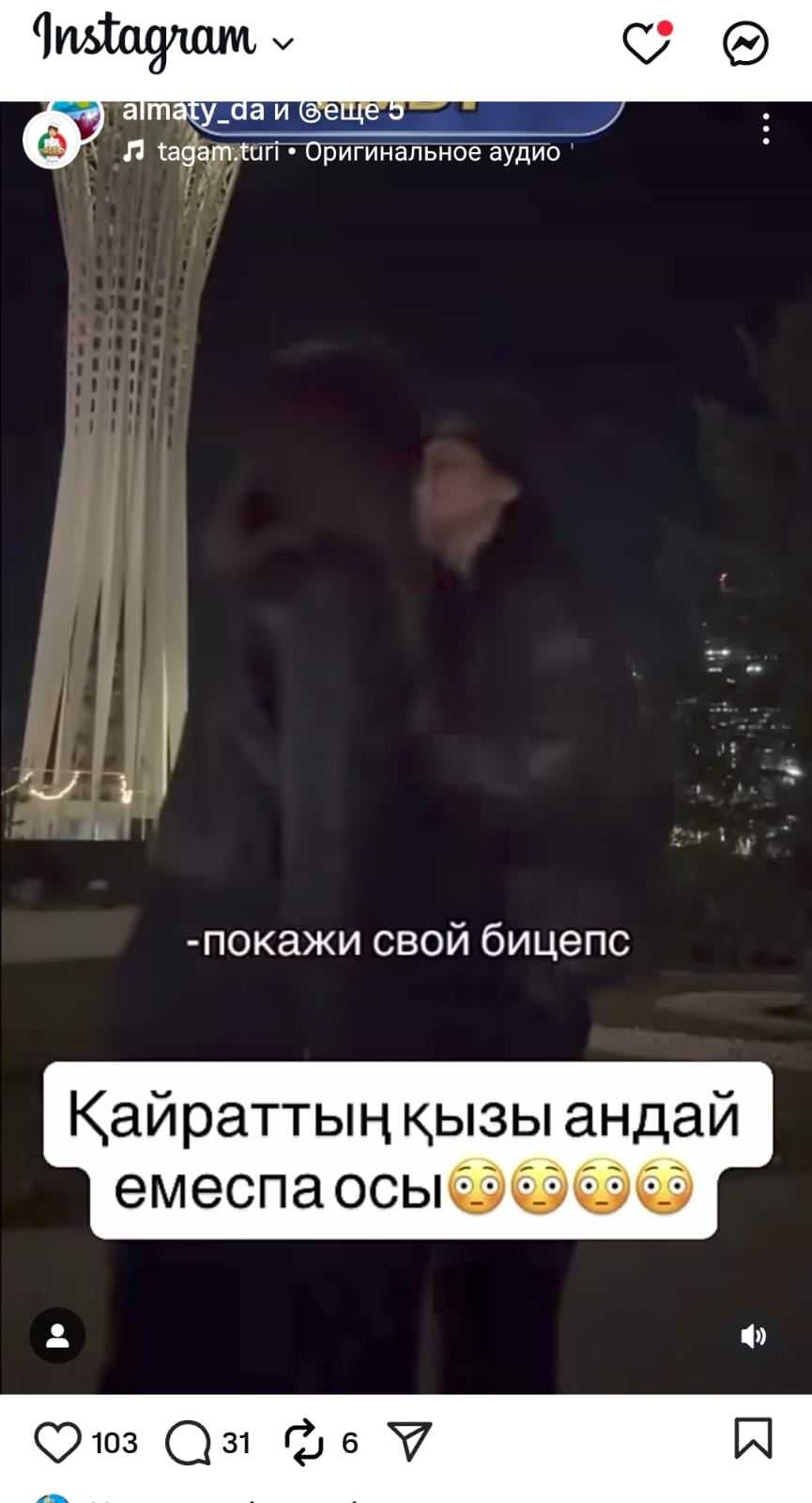 Инстаграмм әлеуметтік желісінде әнші Қайрат Нұртастың қызы Алау Қайратқызының біртүрлі видеосы елдің жағасын ұстатты деп жазады Democrat.kz.