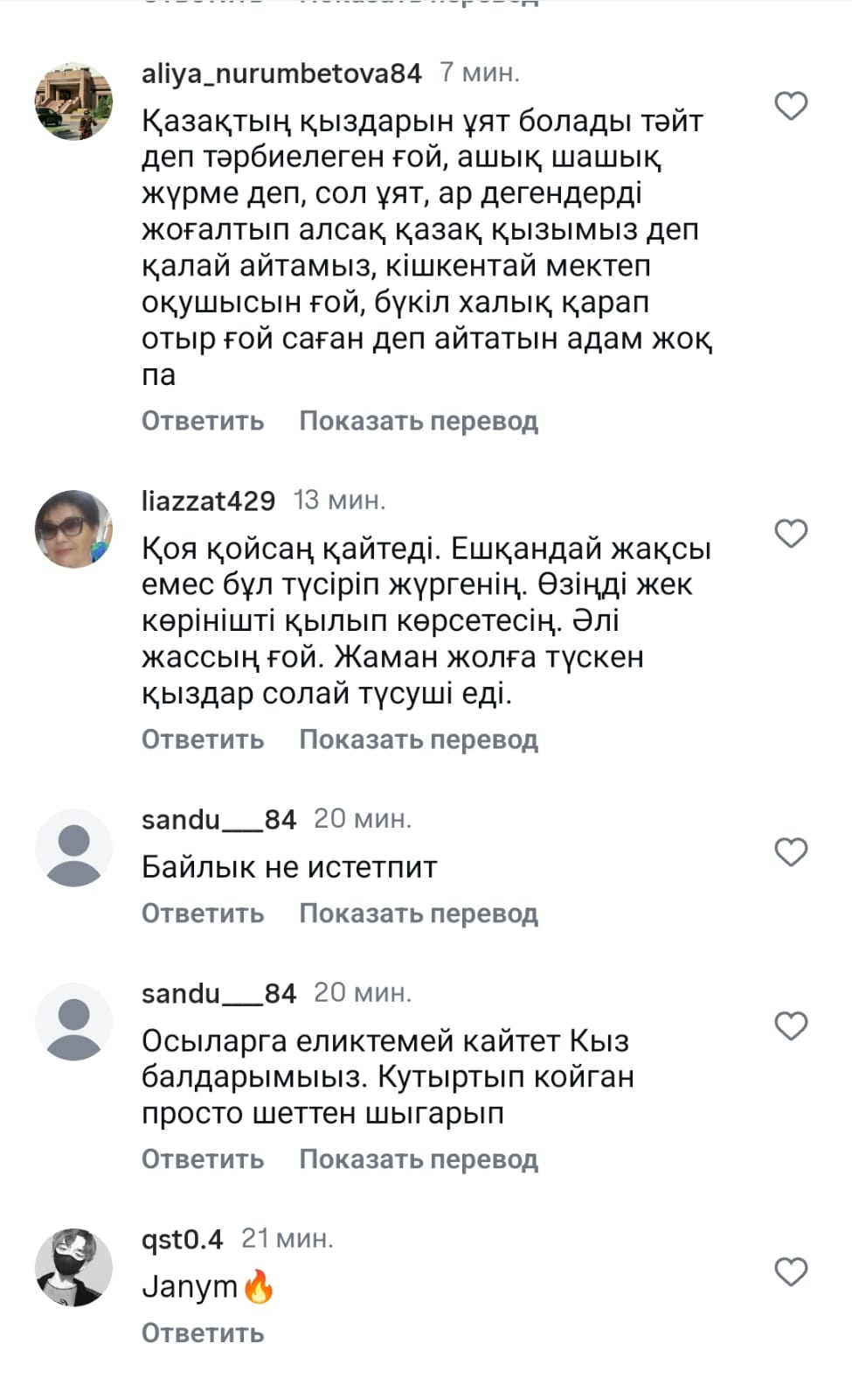 Әлеуметтік желі әркімнің отыратын жері болғандықтан, титтей қыздың өз денесін барынша ашып, тілін шығарып, әбес әрекеттермен ел алдына шығуы ұяттан бұрын басқаларға қандай үлгі деген сұрақ бар.