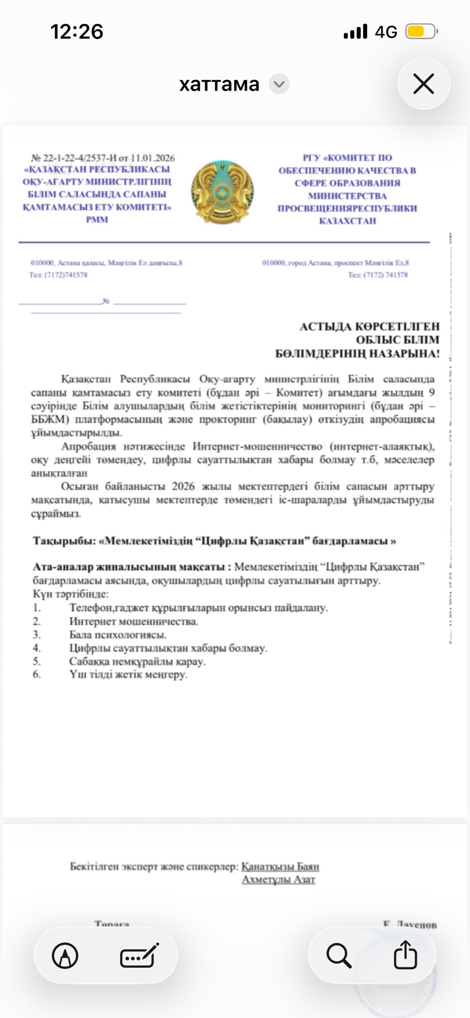 Мен аталған қызметте жұмыс атқармаймын.Менің атымнан жолданған қандай да бір тапсырмалар, қаржылық немесе ұйымдастырушылық сипаттағы өтініштер жалған.Мұндай хабарламалар алаяқтық әрекет болып табылады.