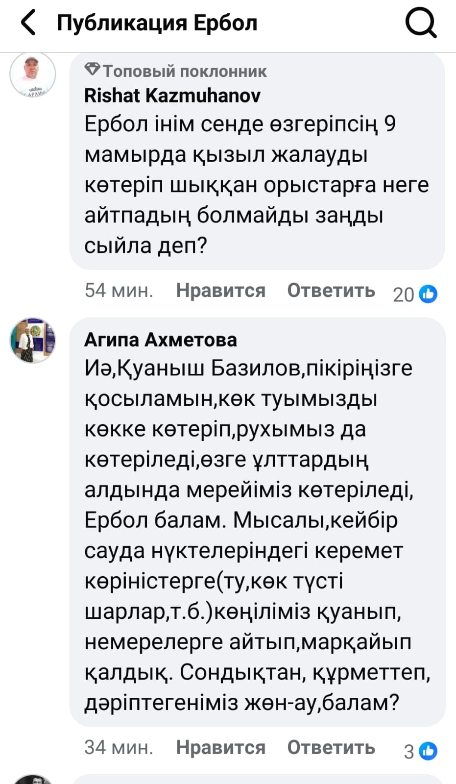 Журналистің бұл жазбасын қолдап, "дұрыс" деп жатқандар да бар.