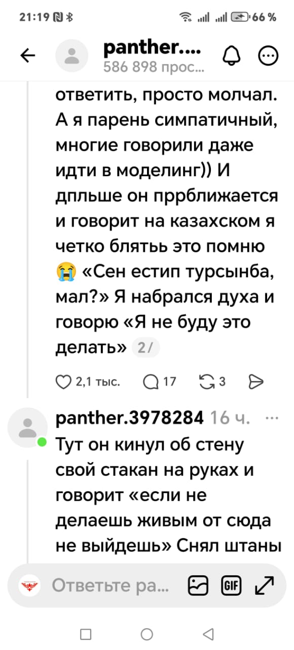 Осы жазбадан кейін әскердегі масқара туралы айтқан анонимді жігіт өзіне белгісіз нөмірлер хабарласып, тіпті бірі қорқытқанын да айтып, "мен қорқа бастадым" деді.