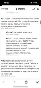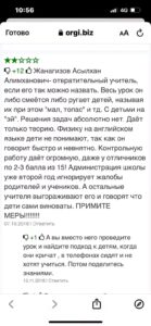 Білім министрлігі қайда қарап отыр? Мына сияқты мұғалімдер мектепте істейтін болса, онда жетіскен екенбіз... Мұғалім деген, керісінше, ең бірінші кезекте тіл жанашыры, ұлт патриоты, ел патриоты, бала болашағының алаңдаушысы, қамқоршысы болуға міндетті!!! Мұғалімнің бойында ондай қасиеттер жоқ па - мектептен аулақ болсын!!!....