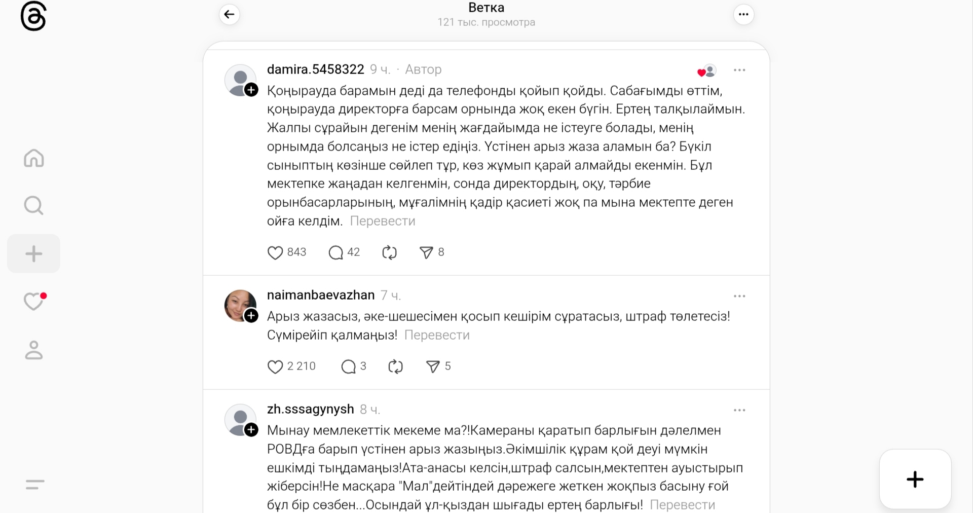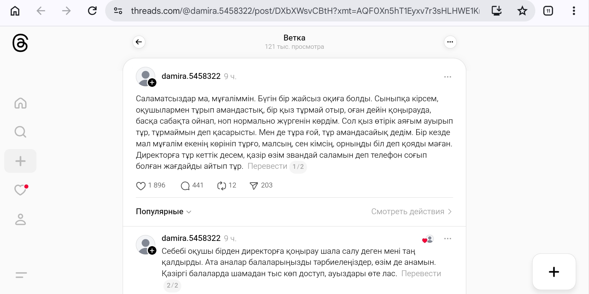 Threads желісін қолданушы ұстаз сыныбында оқушымен арада болған сорақы жағдайды айтып, жан айқайын жеткізді.