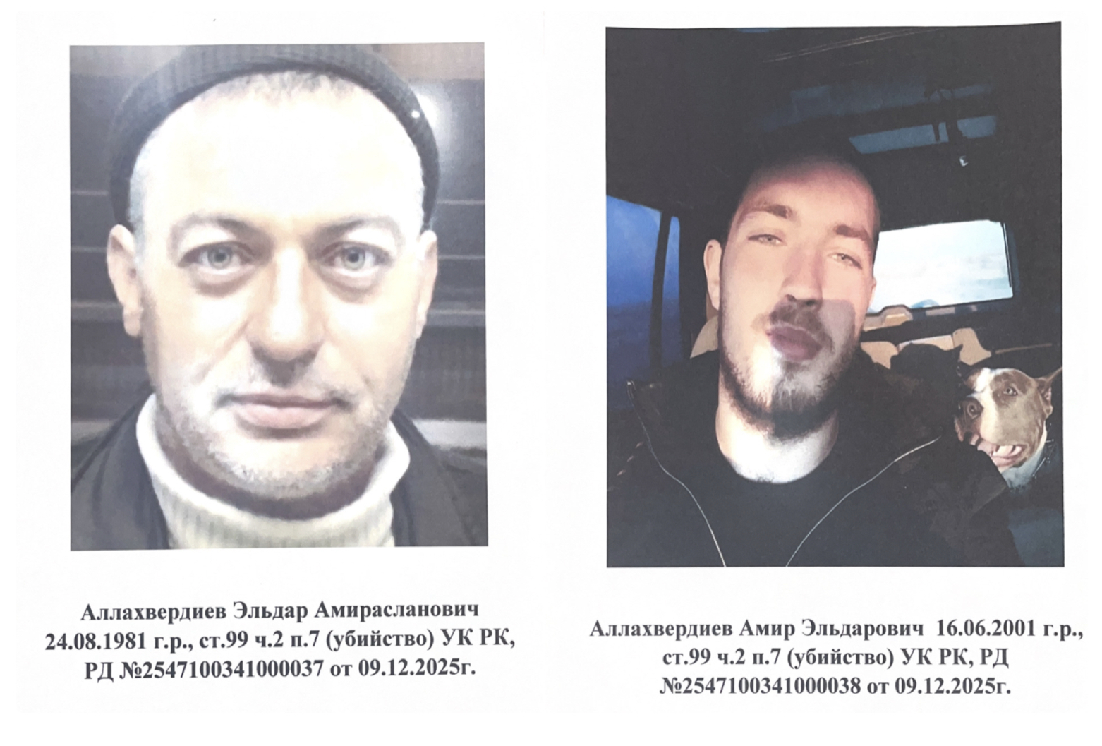 "Олардың орналасқан жерін анықтауға және ұстауға көмектесетін нақты ақпарат үшін жеке сыйақы жариялаймын – 2 000 000 теңге. Сыйақы кепілдендірілген. Заң шеңберінде анонимдік сақталады", – делінген үндеуде.
