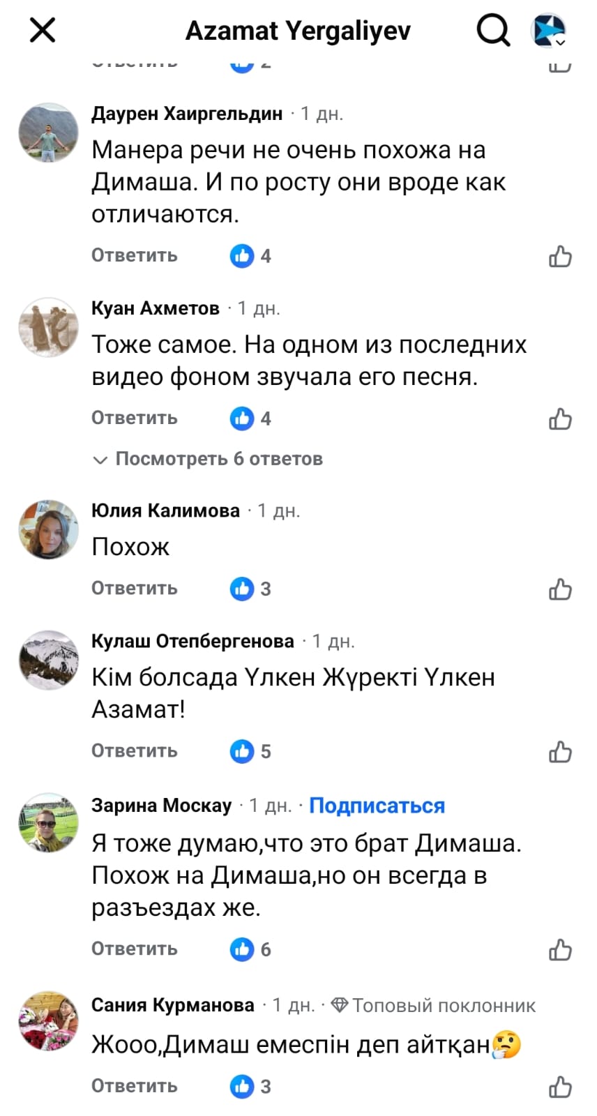 Азамат Ерғали "Маскадағы адам" меніңше біздің Димаш Құдайберген сияқты. Сіз қалай ойлайсыз?" деген сұраулы жазба жариялады.