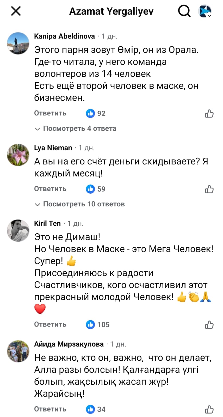 Қоғам белсендісі Азамат Ерғали көптен бері мұқтаж кісілерге миллиондап көмек көрсетіп жүрген адамның кім екені туралы сұраулы жазба жариялады деп жазады Democrat.kz.