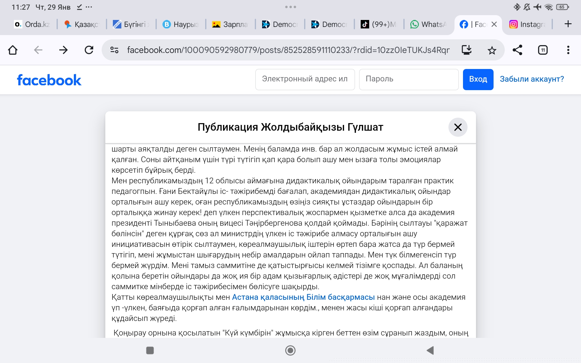 Мен түк білмегенсіп түр бермей жүрдім. Мені тамыз саммитіне де қатыстырғысы келмей тізімге қоспады. Ал баланың қолына беретін ойындары да жоқ ия бір адам қызығарлық әдістері де жоқ мұғалімдерді сол саммитке мінберде іс тәжірибесімен бөлісуге шақырды.