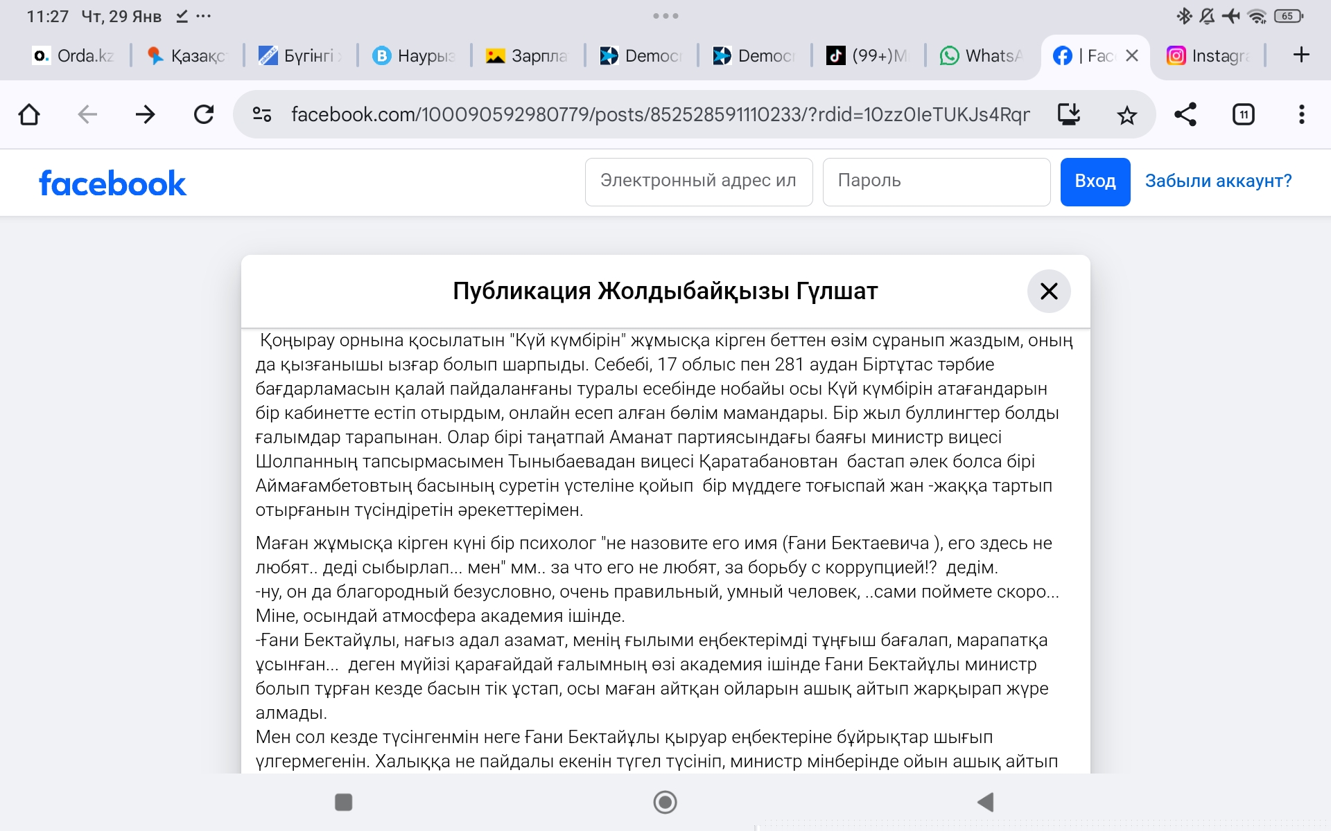 Маған жұмысқа кірген күні бір психолог "не назовите его имя (Ғани Бектаевича ), его здесь не любят.. деді сыбырлап... мен" мм.. за что его не любят, за борьбу с коррупцией!? дедім.