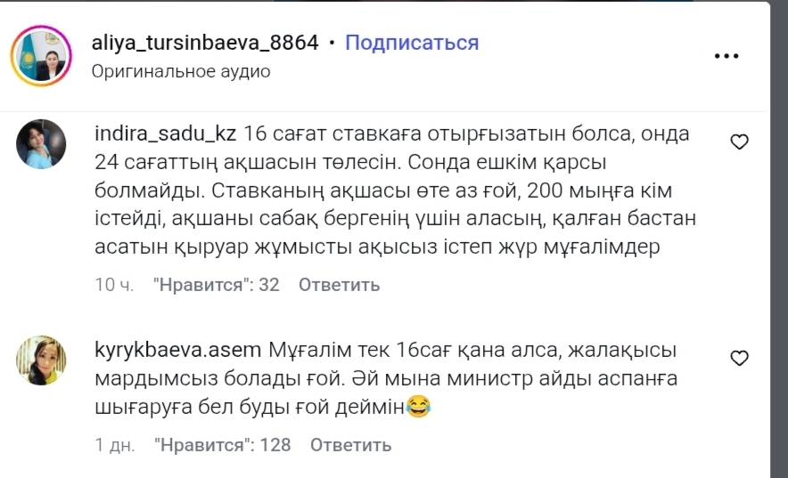 "Мұғалім тек 16сағ қана алса, жалақысы мардымсыз болады ғой. Әй мына министр айды аспанға шығаруға бел буды ғой деймін"