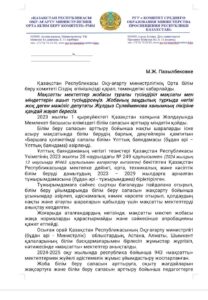 Қазақстан Республикасы Оқу-ағарту министрлігінің Орта білім беру комитеті Сіздің өтінішіңізді қарап, төмендегіні хабарлайды.