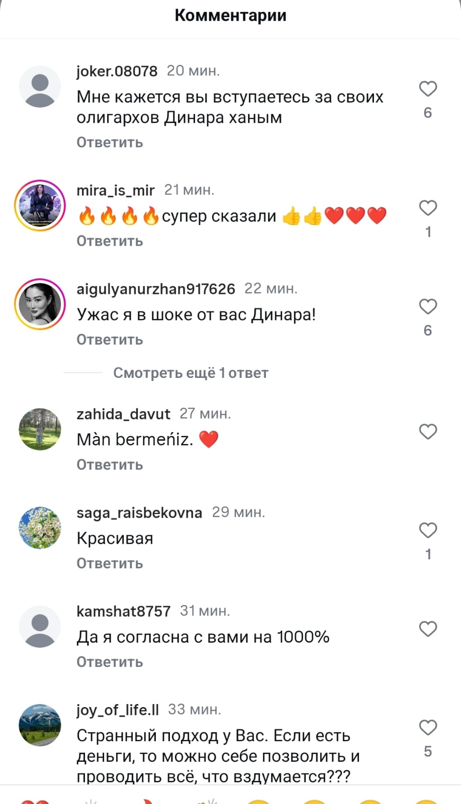 Динара Сәтжанның бұл жазбасын қолдай кеткен оқырманы аздау.