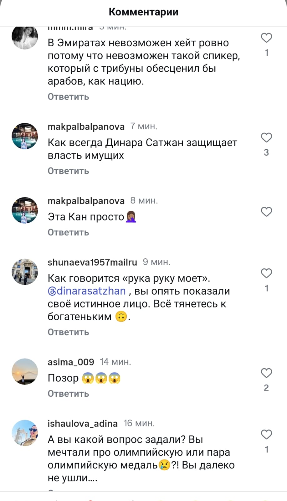 Жұрттың ақшасын санауды ұнатамыз ғой. Бірақ 700 млн мемлекеттің ақшасын бір ғана Комиконға жұмсағанда, үндемейміз" дей келе Эмират, Дубайда хейт жазуға тыйым салынғанын алға тартты.