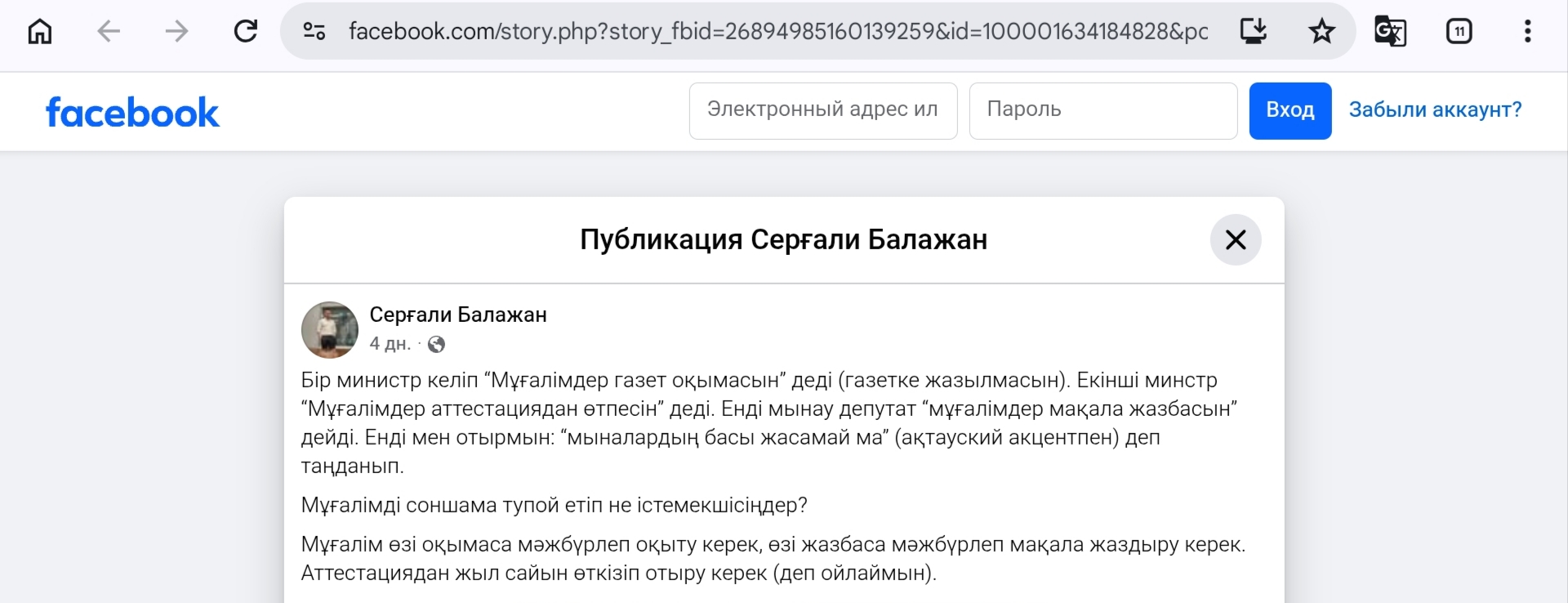 "Мұғалімді газетке мәжбүрлеп жаздыртып, жылына бір рет аттестация тапсырту керек"дейді журналист