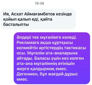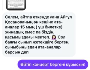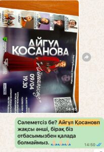 Бірер күн бұрын депутат Дәулет Мұқаев мұғалімдерге "Алатау серілері" тобының концертіне күштеп билет алғызып жатқаны туралы жазып еді. Дәл осыған ұқсас жағдай енді әнші Айгүл Құспанованың концертіне қатысты да болыпты. Бұл туралы өзінің парақшасында журналист Диас Нұрақын "Сайлау сайын жексұрын болатын мұғалімдер сауын сиырға айналған екен. Саяси науқаннан бөлек, сахна жұлдыздарының концерті де ұстаздардың мойнына жүктеліпті. Кешегі "Алатау серілерінің" ән кешіне күштеп билет алғызады деген тақырыптың тиегі тарқатылды. Сөйтсек серілер ғана емес мұғалімдерді барлық концертке билет сатуға мәжбүрлейді екен. Мәселен, 9-сәуір күні Алматыда Айгүл Қосанованың жеке концерті болған. Соған қаладағы әр мектепке билет бөлінген көрінеді. Бағасы бес мың теңгеден. Оны директор мұғалімдерге міндеттеген. Ал, мұғалім ата-аналарға салмақ салады. Осы тізбекпен танитын-танымайтын әншілердің шығармашылық кеші "аншлагпен" өтіп жатыр. Ата-аналар ай сайын әйтеуір бір әншінің концертіне амалсыз билет аламыз деп безек қағуда. Демек Алматының білім бөлімінде отырған біреу бүкіл әншінің концертмейстері болып алған. Қызметін пайдаланып мектептерді билет алуға мәжбүрлейді. Өзі ортадан процентін ұстап, шылқып отыруы бек мүмкін. Немесе министрлердің тойында тегін ән айтатын әншілер, концерт кезінде билет сатуға көмектесіңіз деп өтініш айтатын сияқты. Былайша айтқанда бартер. Ғани Бейсембаев, "Мұғалімдер мәртебесі" деген заң қайда қалды? Ұстаздарды қашанғы от пен суға сала бересіздер? Мықты әншінің концертіне жұрт онсыз да барады. Мәселен Джей Лоға жұрт билет таппай жүр. Нарық заңын қолдан реттеуді қою керек қой?!" деп жазды. Фото автордың парақшасынан алынды.