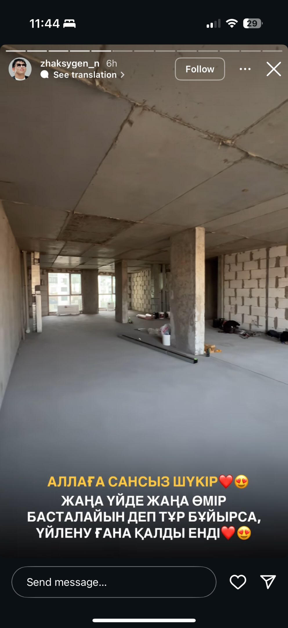 Актер салынып жатқан жаңа үйінің суретін көрсетіп, сторисінде мақтанған көрінеді.