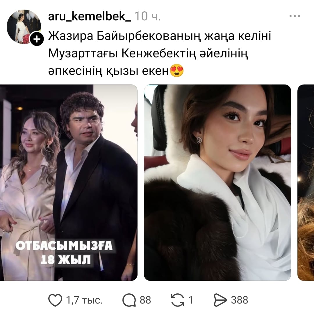 "Жанболат пен Жазираның болашақ құдалары МузАрт тобының әншісі Кенжебек Жанәбіловтің бажасы екен"деп жазды желі қолданушы Ару Кемелбек.