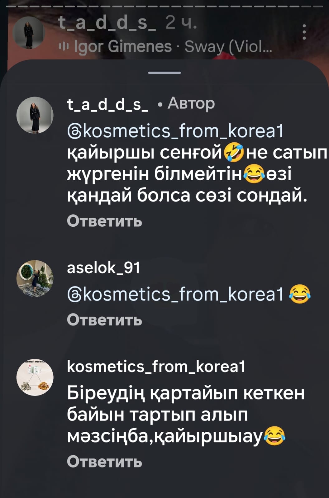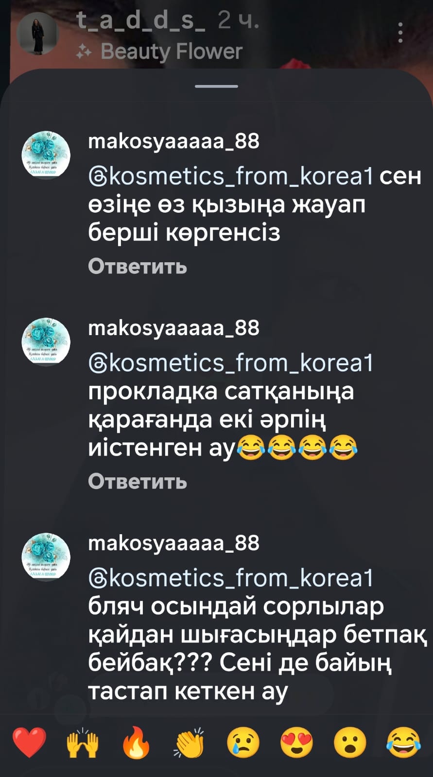 Пікір жазған келіншектің "прокладка" сататынын бетіне басқан Айман осы жолы "тауып айттым" дегендей.
