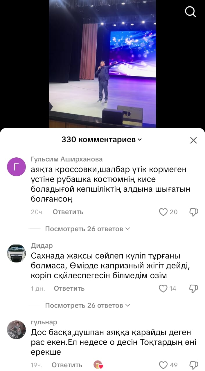 Көрерменнің алдына шығып, сахнадан ізгі тілектерін жолдап тұрған әнші Тоқтар Серік кейбіреулерге жақпай қалды.