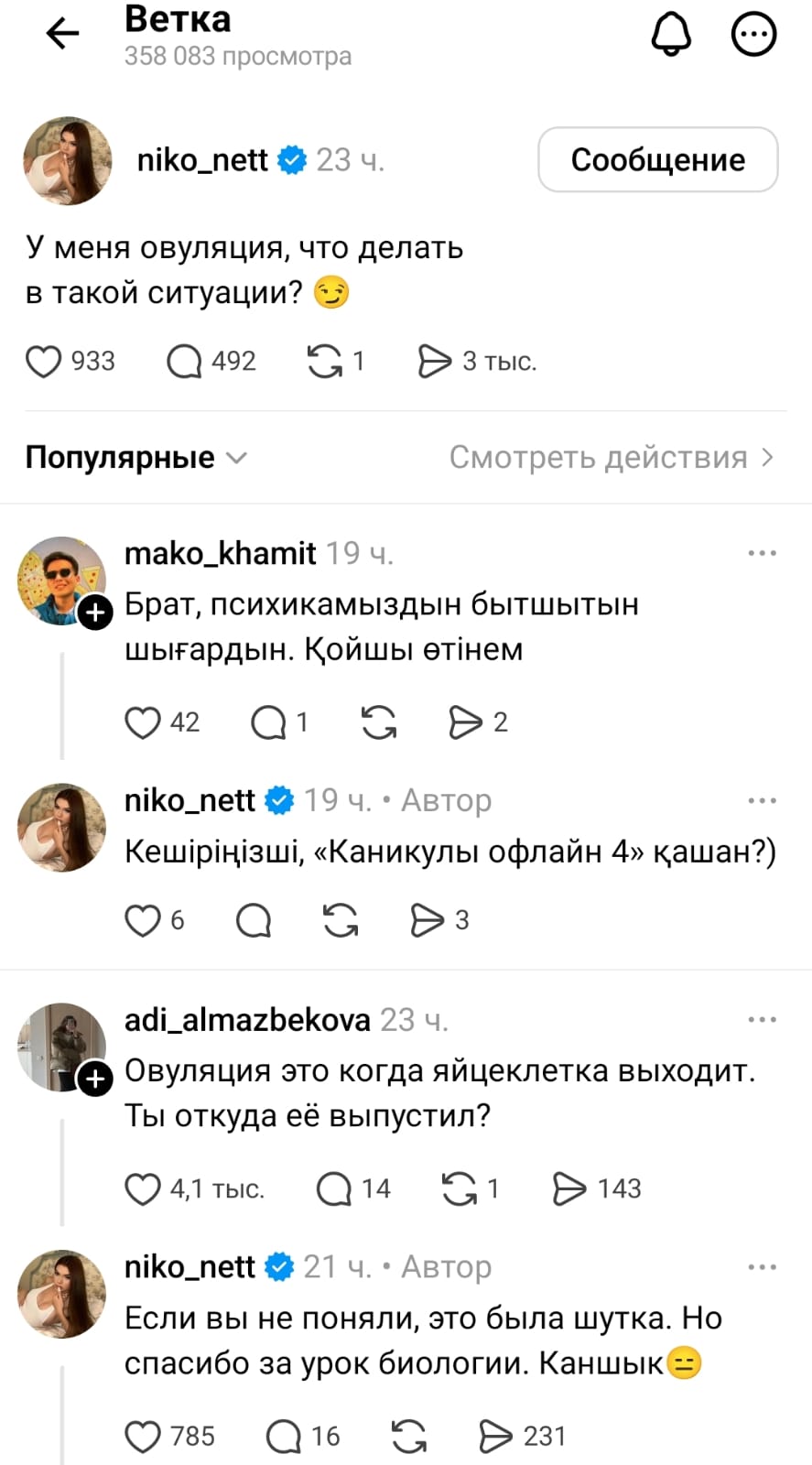 "Менде овуляция басталды, мұндай кезде не істеу керек?" Деп сұрау салған Никонеттің сөздері қызу талқыға түсті.
